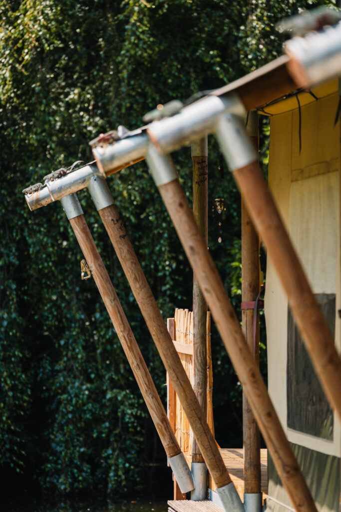 The terrace (25m²) is “floating” above the water, where you can enjoy your BBQ or try your luck with fishing. The sanitary room is outside, just a few steps away from your Safari tent and it is only shared with your direct neighbours.